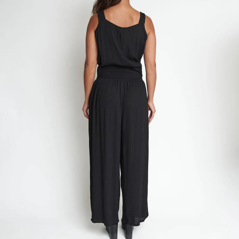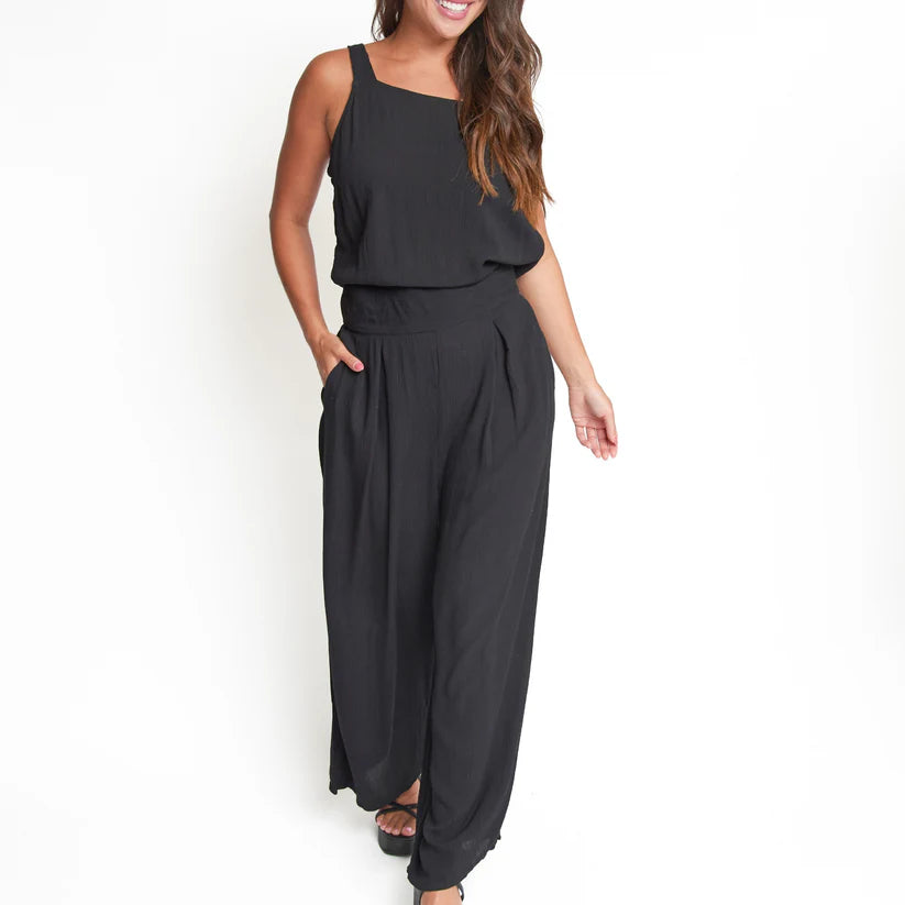 The perfect summer outfit! Featuring a flattering wide leg design and classic black hue, all in a lightweight crepe fabric, the Amerie Crepe Wide Leg Jumpsuit will be your go-to this spring and summer. Dress it up with a pair of heels, or down with a jean jacket and sandals - it's so easy to wear!