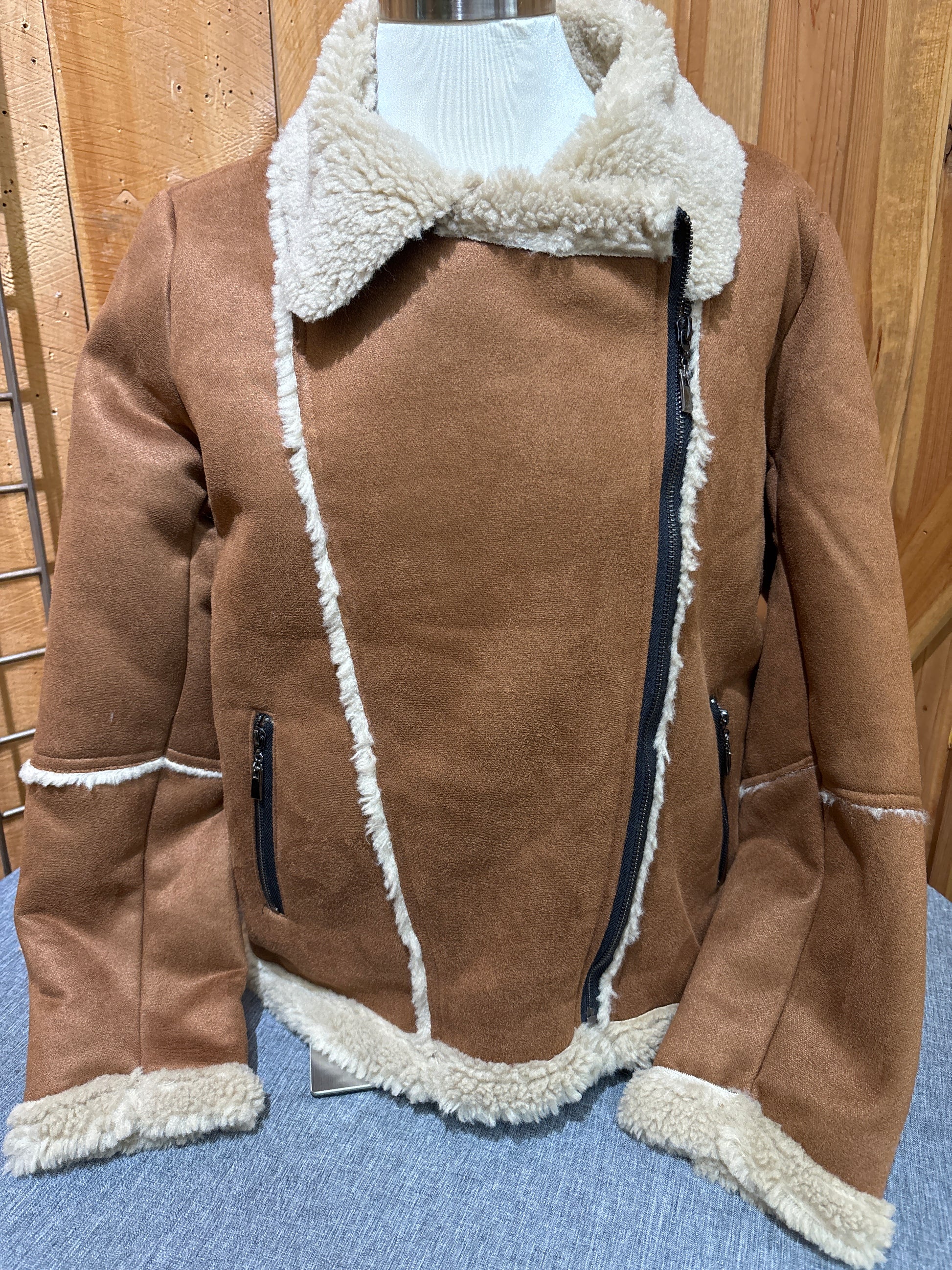 Creation Leather Asymmetrical Zipper Fur Lined Jacket