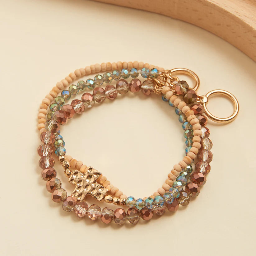 Love a layered look! Effortlessly whimsical, the Estee Multi Row Cross Toggle Bracelet features three strands of beaded perfection with sweet cross charm and classic toggle closure. Easy to wear, this bracelet adds color and interest to any look.