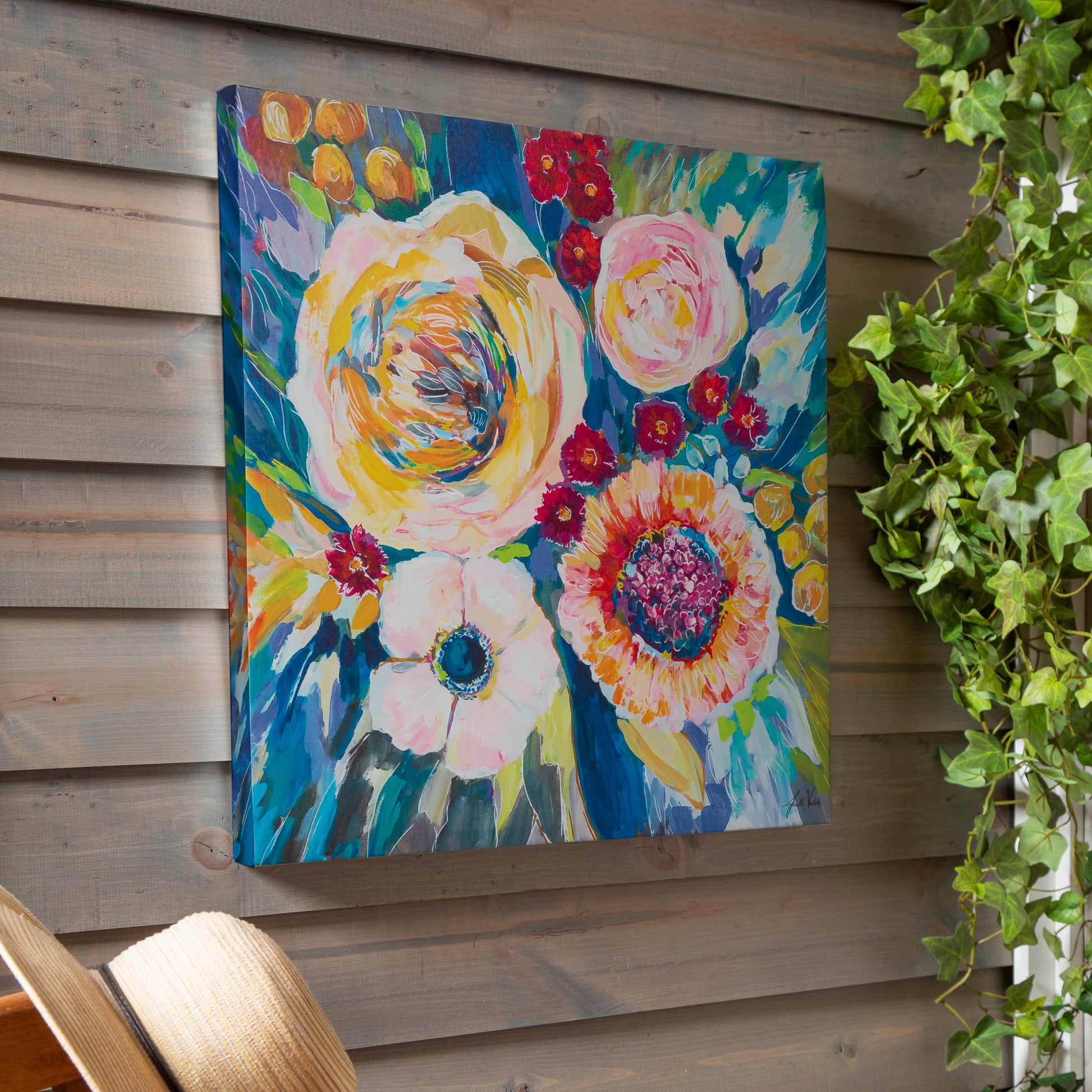 Transform any space into a a beautiful oasis with this outdoor canvas that breathes new life into the home. Featuring enchanting flowers blooming in a bouquet, this art piece adds warmth and charm to any room. Crafted with vivid colors and attention to detail, our wall canvases are perfect for creating a serene ambiance that lasts throughout the year. Whether hung up in the living room, study, or on the patio, this piece elevates any space.